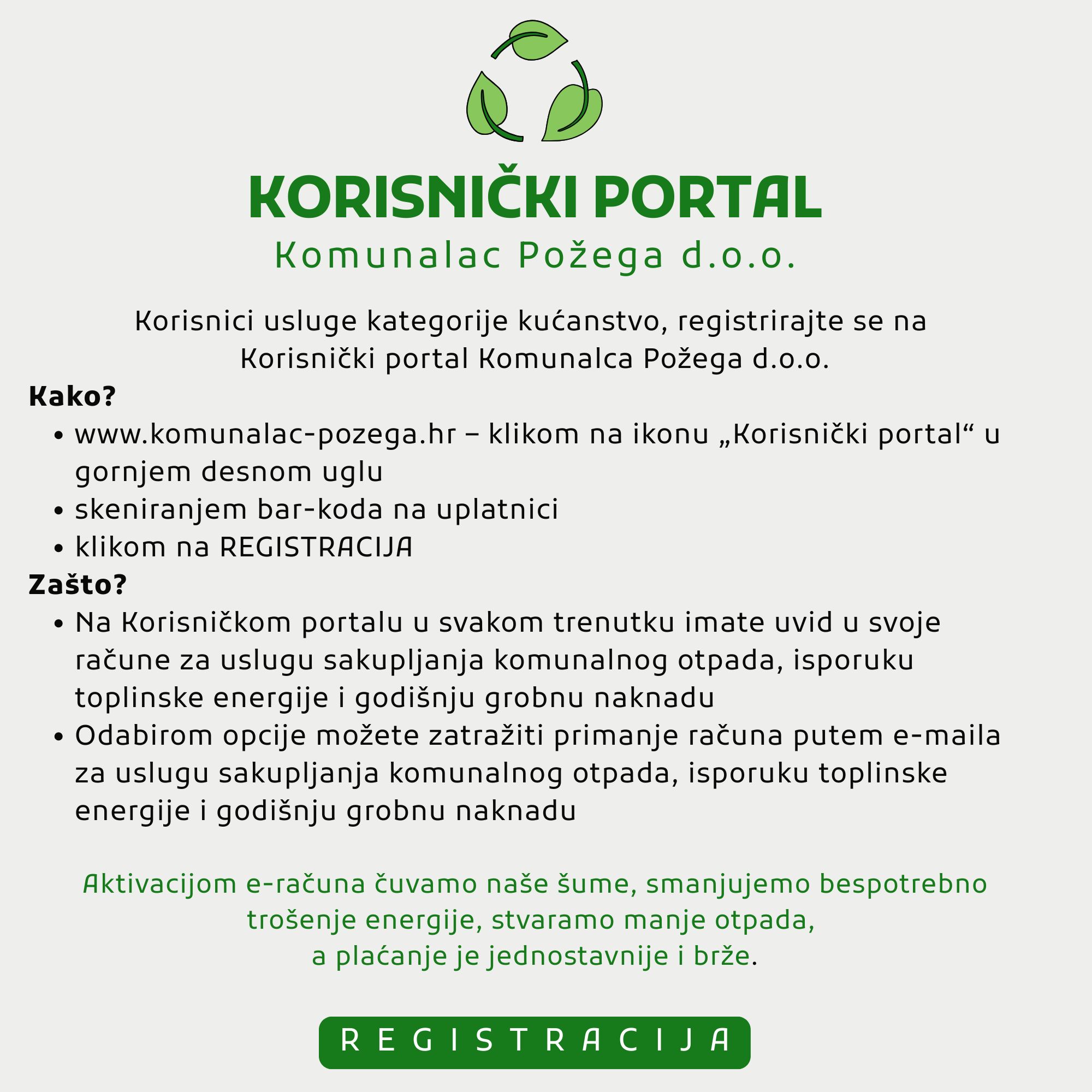 Osnovni cilj komunalnog društva Komunalac Požega d.o.o. je poslovanje kojem su osnovne karakteristike sigurnost, pouzdanost, točnost i kvaliteta usluge na zadovoljstvo svih korisnika, pri čemu su zaštita okoliša i energetska učinkovitost sastavni dio poslovne politike.