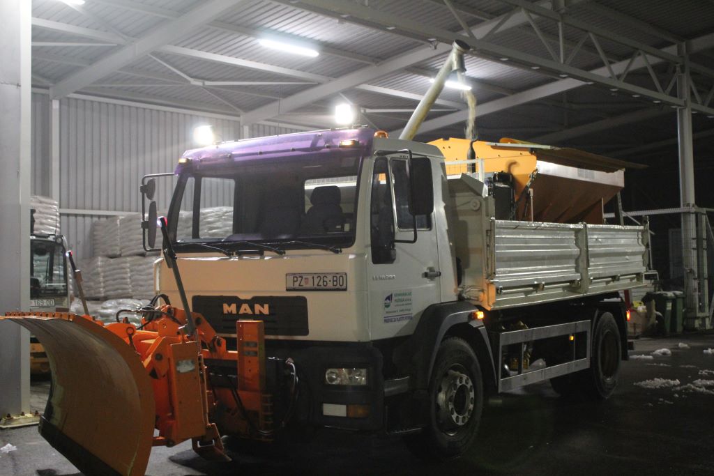 U nedjelju navečer je dežurna ekipa s tri traktora i dva kamiona na teren izišla u 19 sati. Obavljeno je soljenje kolnika. Akcija je trajala do 23 sata.