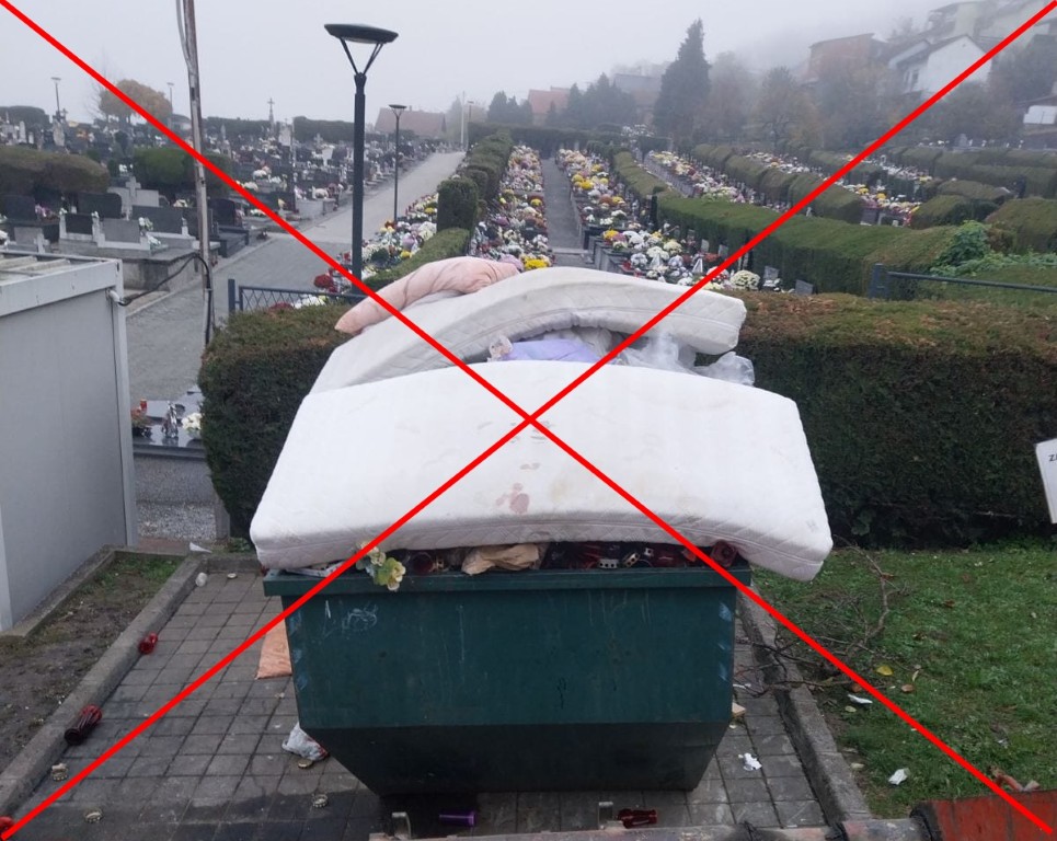 Nažalost, pojedinci uz groblja odlažu svoj kućni otpad poput madraca, vodokotlića, udžbenika i bilježnica, tepiha, kišobrana, pa čak i ostataka hrane poput slanine odložene uz Groblje Sv. Ilije. Takvo je odlaganje strogo zabranjeno i neprihvatljivo.