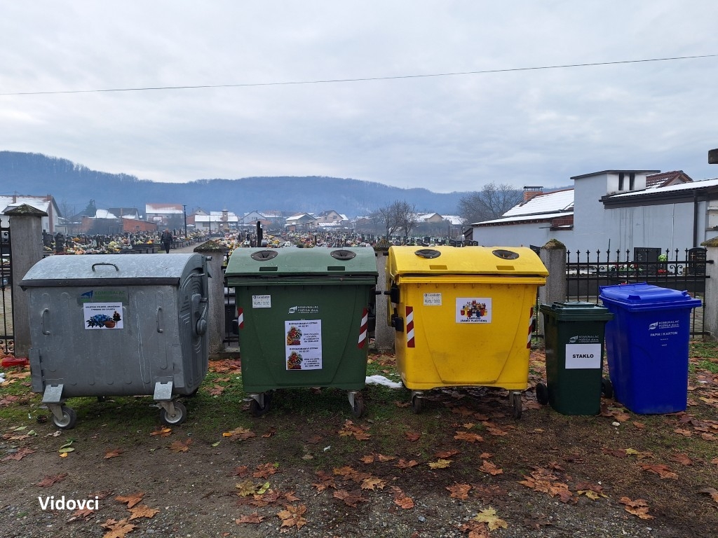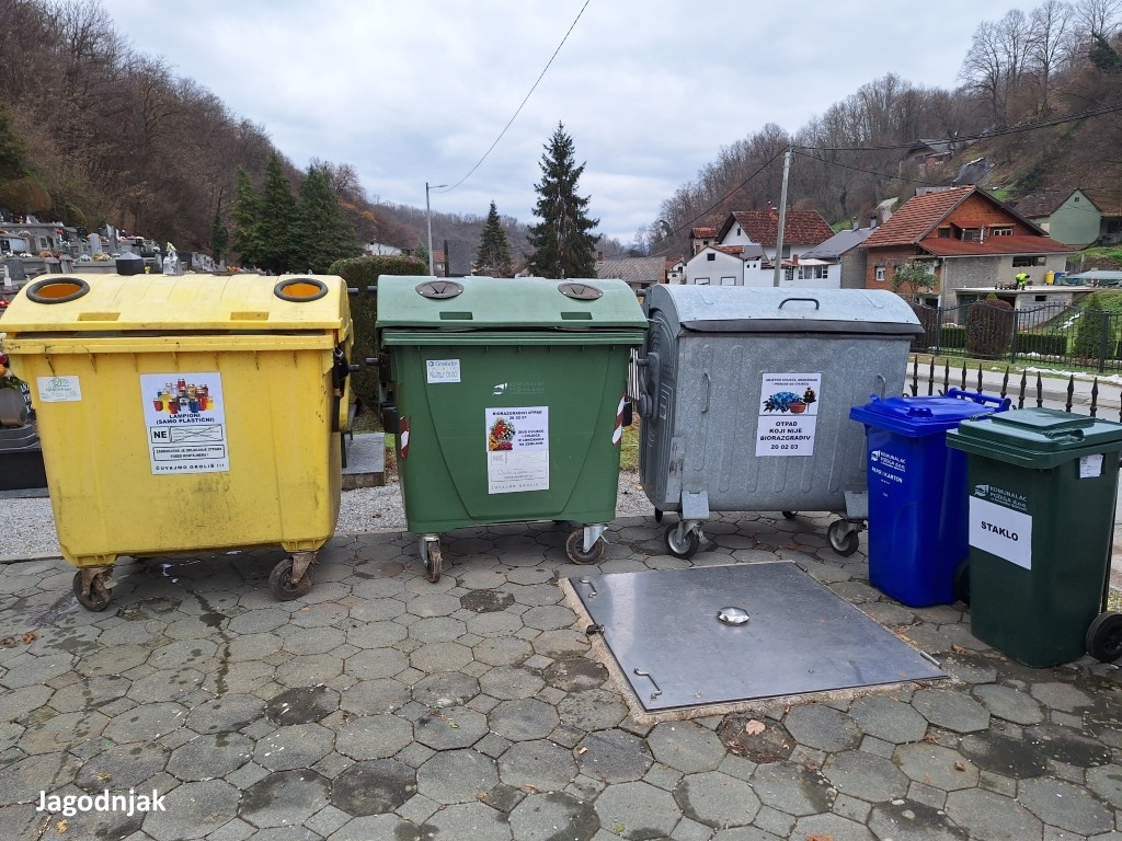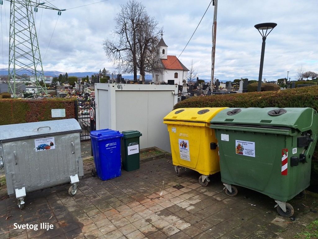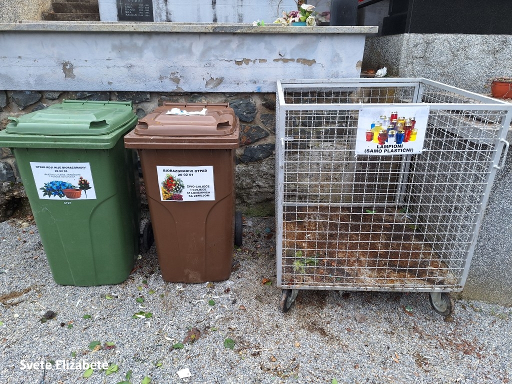 Na nekim su grobljima postavljeni zeleni otoci s mrežastim spremnicima te kantama od 120 ili 240 litara, jasno označenima za koju su vrstu otpada namijenjeni.