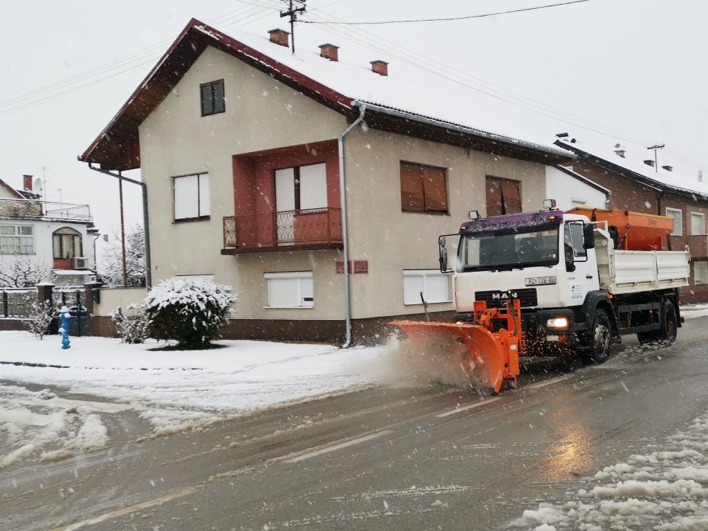 Na terenu je desetak djelatnika s 8 vozila. Jak snijeg počeo je padati nešto iza 4 sata i vrlo je brzo zabijelio kolnike i nogostupe.